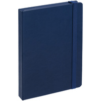 Ежедневник с твердой обложкой, выполнен из материала Latte, темно-синий ХХ, обрез темно-синего цвета, дополнен резинкой и ляссе темно-синего цвета.