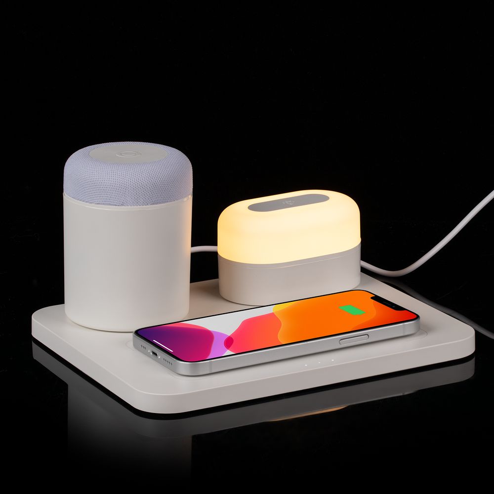 Станция беспроводной зарядки с колонкой и ночником Trilogy, белая – описание
