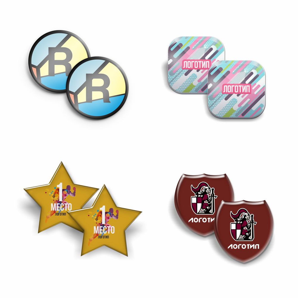 Полноцветная печать с одной стороны входит в стоимость изделия.Значки с двухсторонней заливкой эпоксидной смолой и цанговым креплением (гвоздик и защелка).