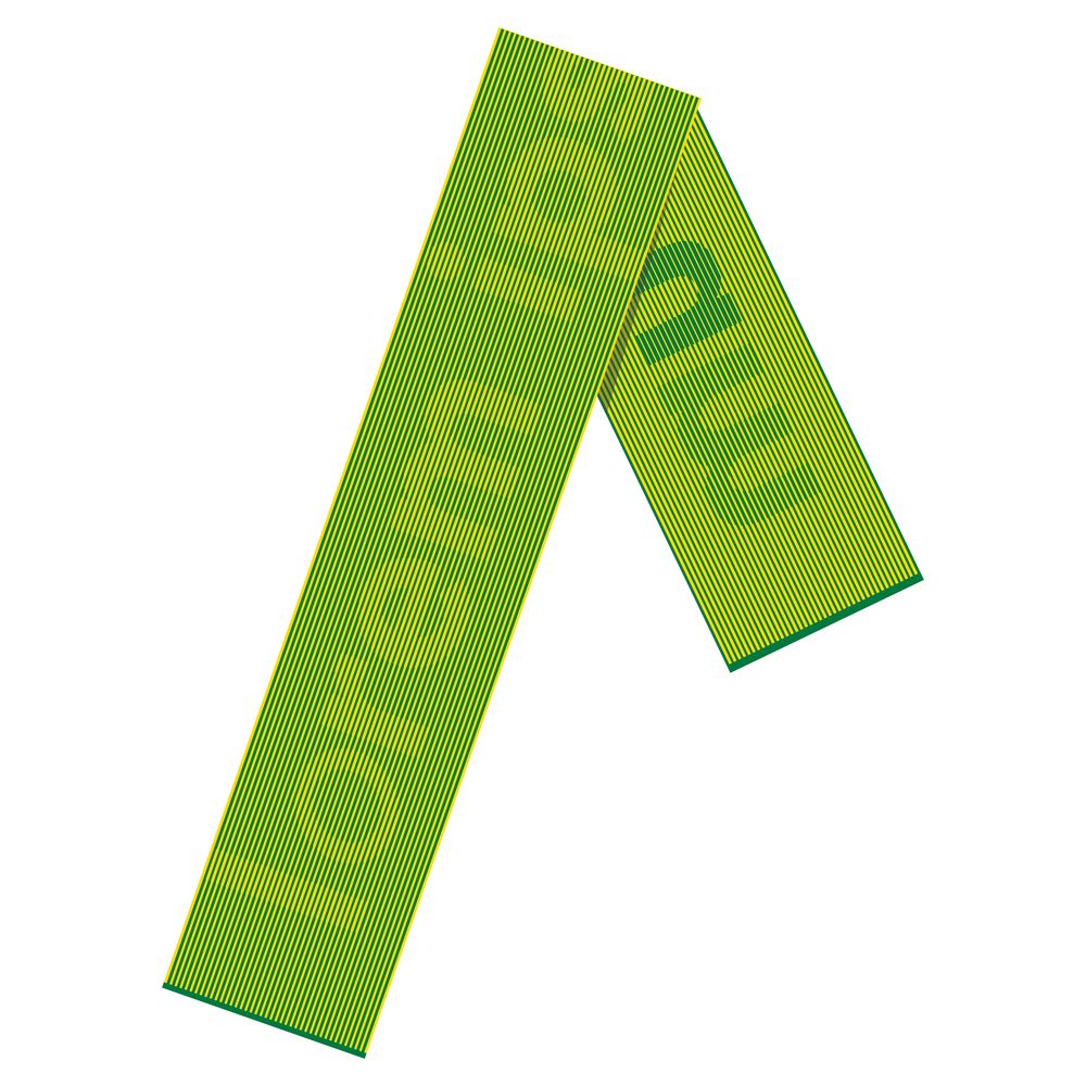 Изнаночная сторона: рисунок читается с обеих сторон шарфа, но на обратной стороне происходит инверсия цвета — текст оказывается в зеркальном отражении.