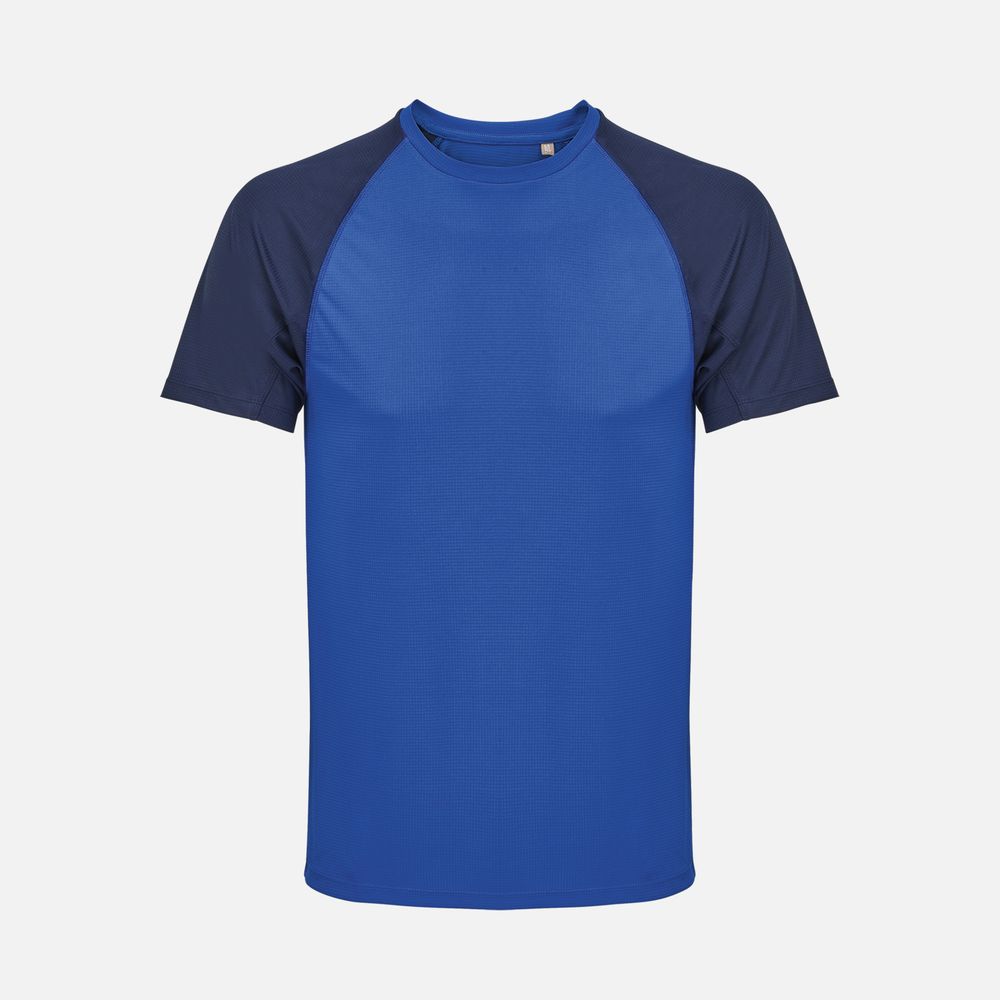 Футболка спортивная унисекс Vortex, темно-синяя с ярко-синим – описание