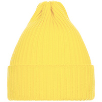Однослойная шапка фактурной вязки с двойным отворотом.