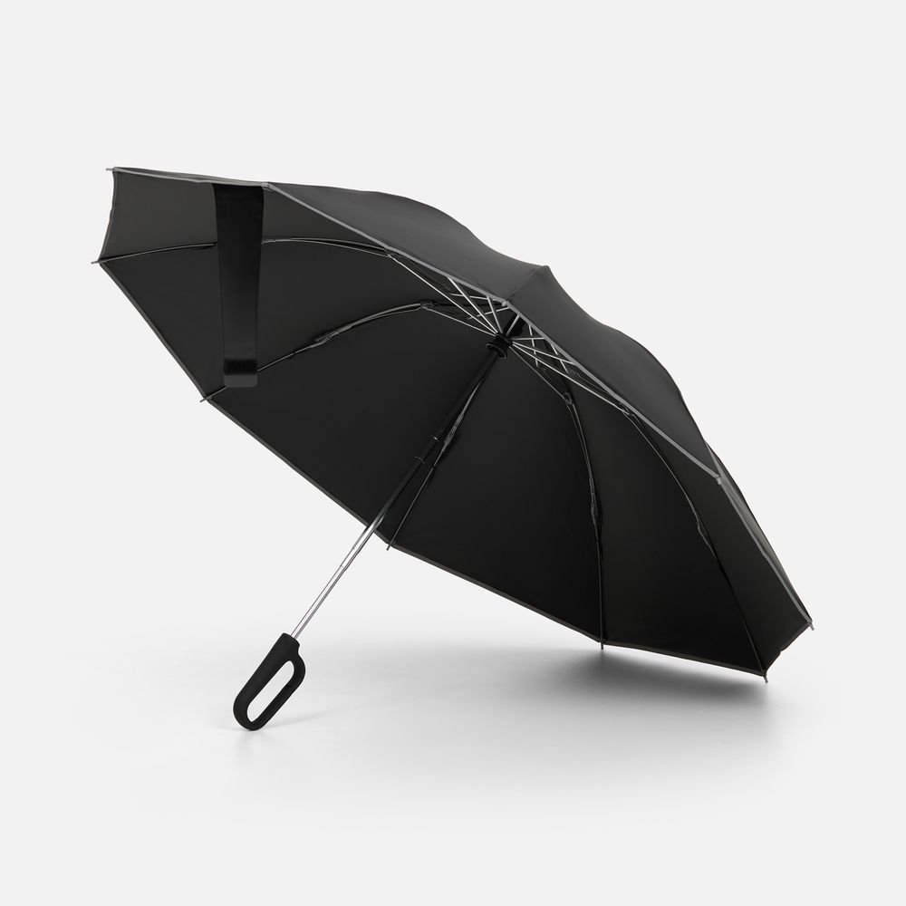 Зонт обратного сложения с ручкой-карабином Foldberry, черный